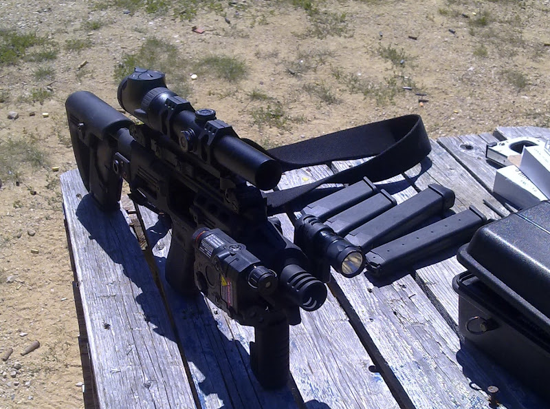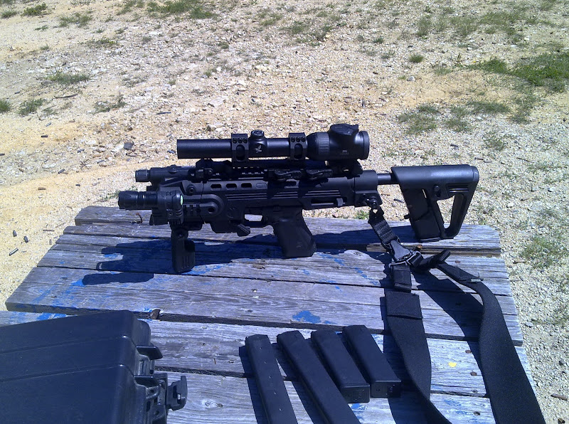 5. Presnost strelby - zalezi od strelca, ale ak hovorime o beznom cloveku, s klasickym Glockom alebo akoukolvek kratkou zbranou sa zvycajne daju rychlo riesit krizove situacie do max 15 - 20 metrov (teraz nehovorime o pohodovej mierenke na strelnici, ale krizovej situacii - ked tak si skus navodit nejaku stresovu situaciu, alebo zabehnut par koleciek ci hodit 100 klikov, a potom bleskovo ries poppra na 30m - uvidis ze to nie je nic lahkeho). S takymto konverznym kitom so zbranou opretou do pleca a s dobrym optickym zameriavacom nemas problem presne strielat aj na dvojnasobnu ci mnohonasobne vacsiu vzdialenost. A jasne, nebudes asi strielat na chrbat utekajuceho pachosa, ale ak odchadza na aute tak trafit mu zozadu pneu si za specifickych okolnosti trufnut mozes, atd.
